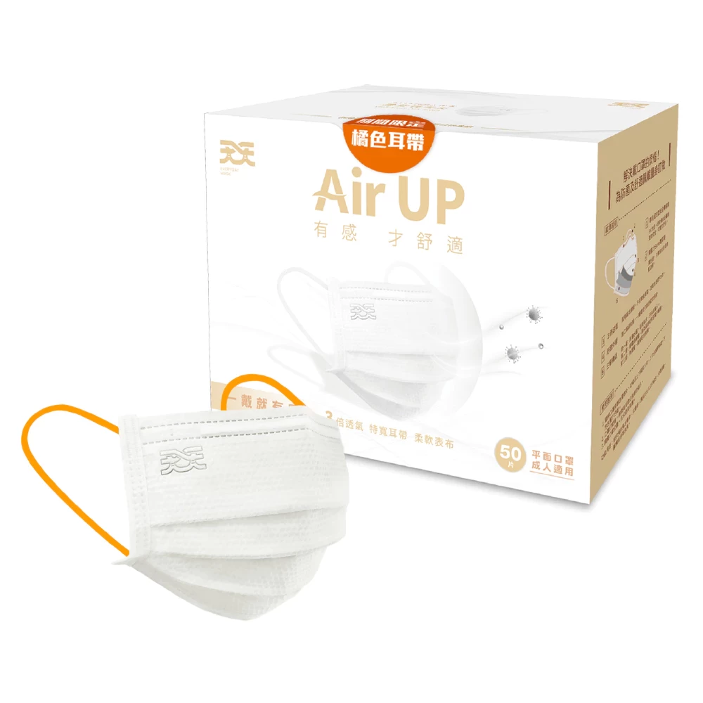 Adult Flat Medical Mask, White (Orange Earloop) – 50 Pieces per Box | 1 Carton = 50 Boxes (2,500 Pieces Total)